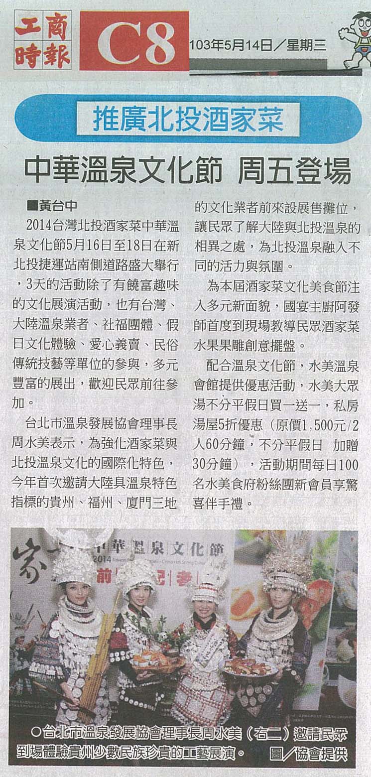 台北市溫泉發展協會 NEWS 最新訊息 推廣北投酒家菜,中華溫泉文化節,周五登場 最新訊息 作者:008@tphta.org 2014-05-28 ‧ 2449次閱讀 載自工商時報 2014年05月14日
